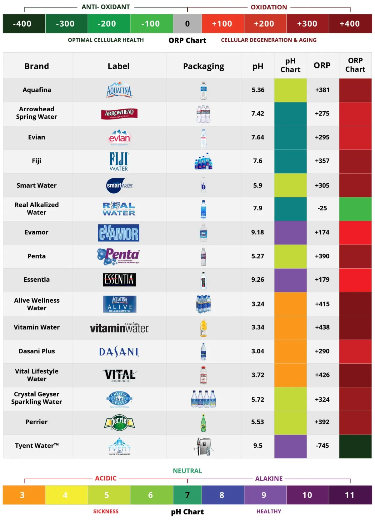 This chart presents findings from a 2008 California study that measured the ORP of various beverages using a scientifically calibrated pH/ORP meter. Beverages with a negative ORP offer cellular protection, whereas those with a positive ORP contribute to oxidative stress.